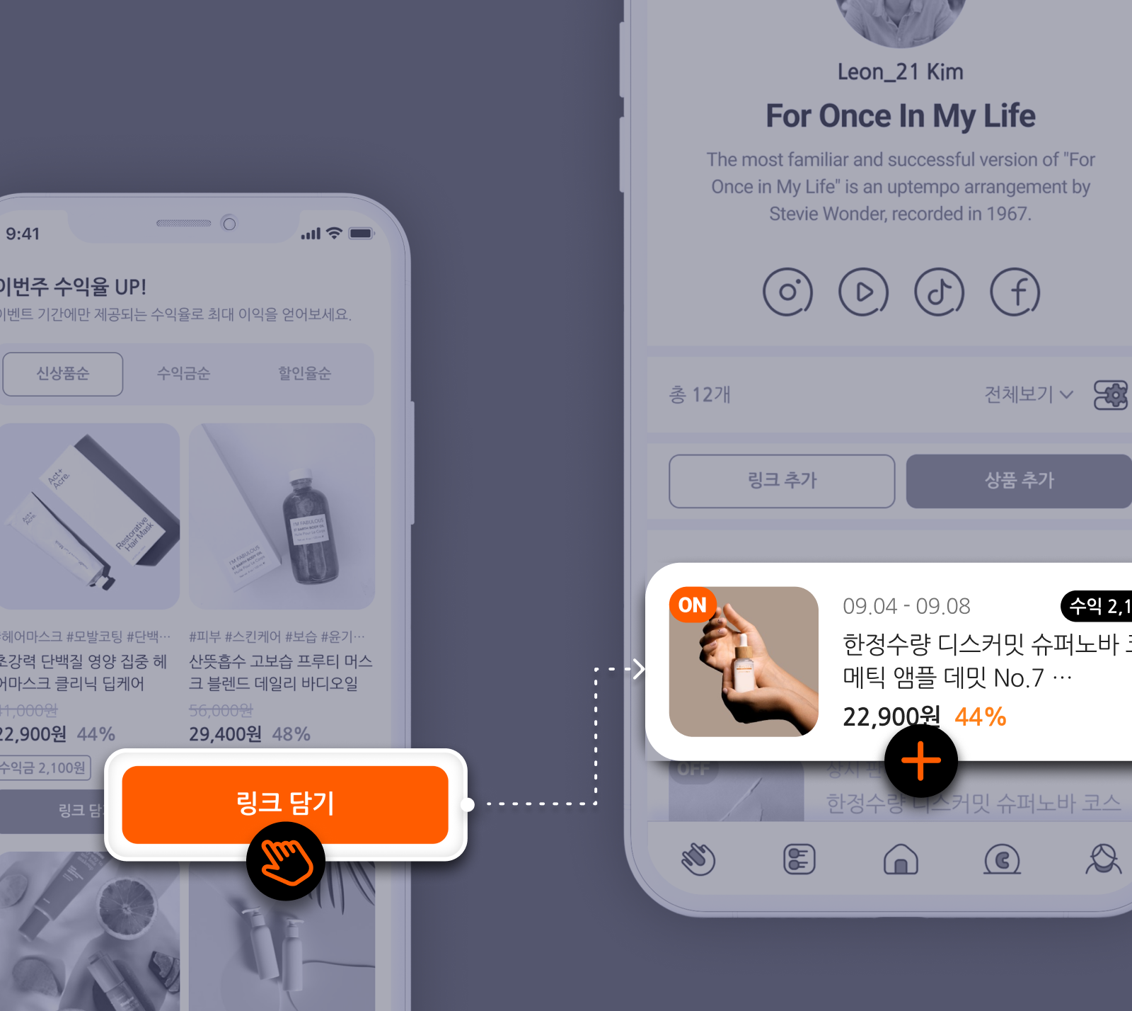 상품을 담으면 세팅할 필요 없이 자동으로 내 마이링크에 모여요!