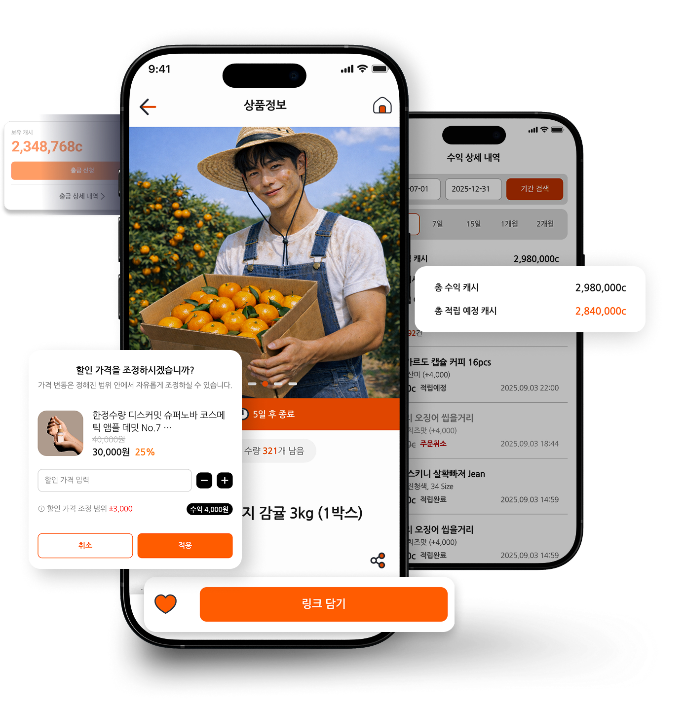 인스타그램 프로필, 블로그, 카카오톡 단체방 어디든. 링크 하나로 수익을 만드세요.