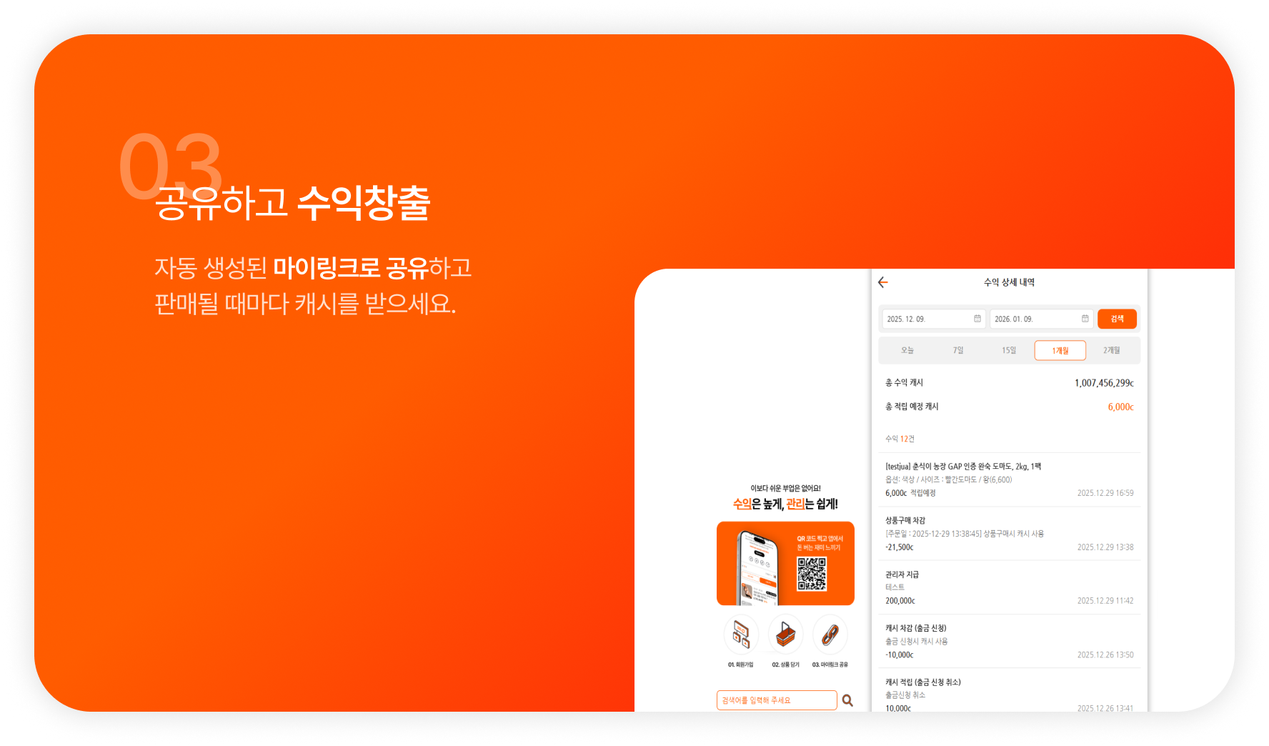 배송부터 고객 응대(CS)까지 본사가 100% 대행합니다. 준비된 상품을 담고 공유만 하세요.